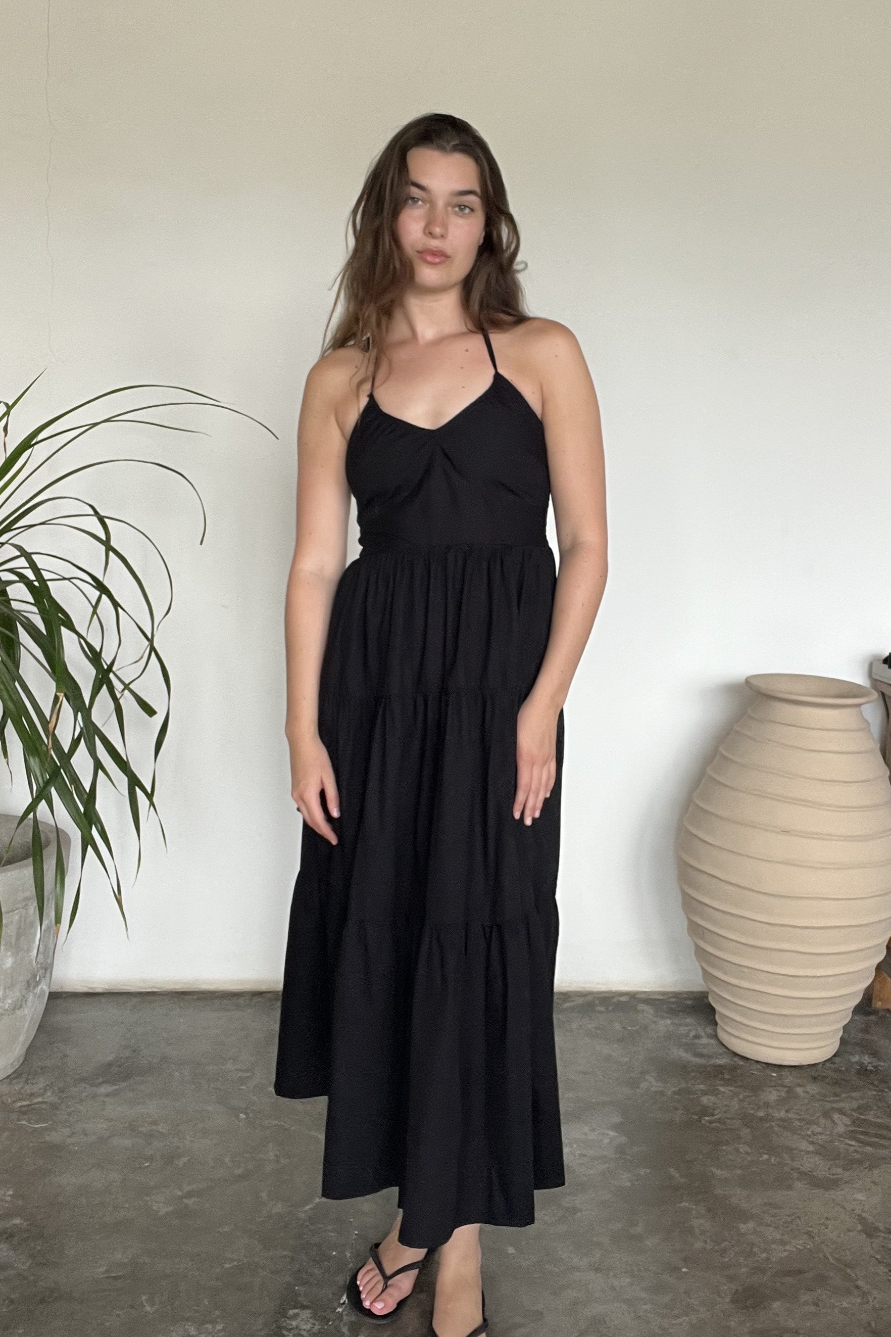 The Leilani Dress in black is where elegance meets relaxed charm. With its playful layered design, it flows beautifully for a look that's both sophisticated and effortlessly fun. Perfect for those who love style with a breezy, comfortable vibe.
